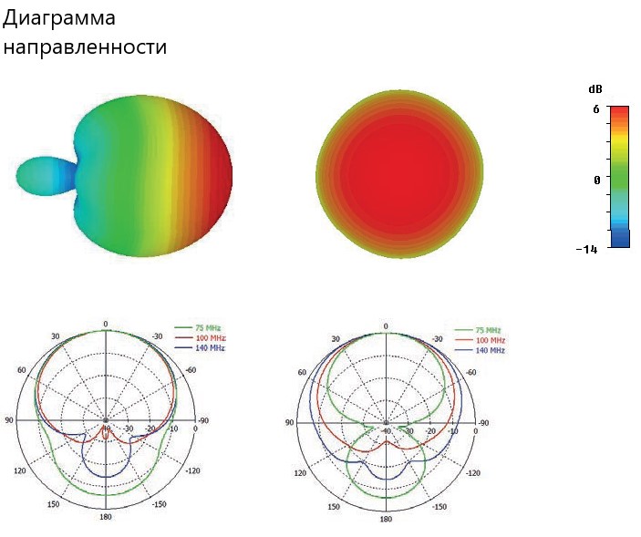 ширина основного лепестка диаграммы направленности (верт./гориз.) на частоте 75 МГц на частоте 140 МГц |